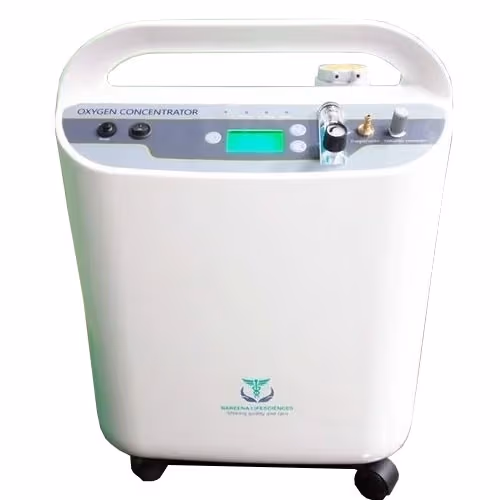 Oxymed Mini 5 LPM (₹32,000-38,000). The direct Indian-brand competitor. Oxymed has Chennai-based assembly, a longer market history in Indian home oxygen, and a dealer network concentrated in South and West India. Spec comparison: Oxymed Mini has comparable weight (~15 kg), comparable noise (~48 dB), comparable purity range, usually includes OPI, and has a more complete alarm suite. Against Nareena, Oxymed is similarly priced but has stronger service reality in most metros. For South Indian buyers, Oxymed wins. For North Indian buyers, Nareena has better distribution.